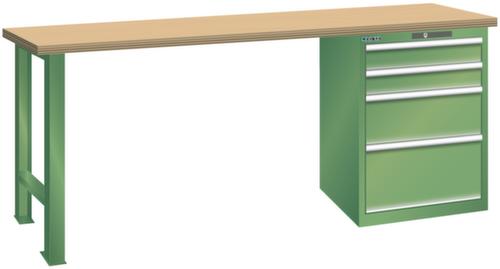 "longDescription": "LISTA Werkbank, Lista Einheit: 27x36E, BxTxH: 2000x800x850mm, Material: Buche, Stärke 50mm, inkl. Vormontage und Befestigungsmaterial, Max. Belastung: 1000kg, Anzahl Schubladen: 4, Anzahl Fronthöhen (Tragkraft): 2x100mm (75kg), 1x200mm (75kg), 1x300mm (75kg), Schubladen-Nutzfläche BxT: 459x612mm, Schliessart: Key Lock, Standard-Schliessung mit Wechselzylinder inkl. zwei Schlüssel mit Schlüsselnummer, Farbe Gehäuse/Füsse: Resedagrün RAL 6011, Farbe Schubladen: Resedagrün RAL 6011. Hohe Ausführungsvielfalt dank verschiedener Komponenten, Unterbauten, Materialien und Oberflächen. Jederzeit anpassbar an neue Arbeitsumgebungen durch den flexiblen Ein- und Umbau sämtlicher Komponenten im Baukastensystem. Schnelle und einfache Montage dank Werkbankplatten mit Vorbohrungen inkl. Hülsen zur Befestigung sämtlicher Unterbauten und Schubladenschränke. Allgemeine Vorteile der LISTA-Schubladenschränke<br>",