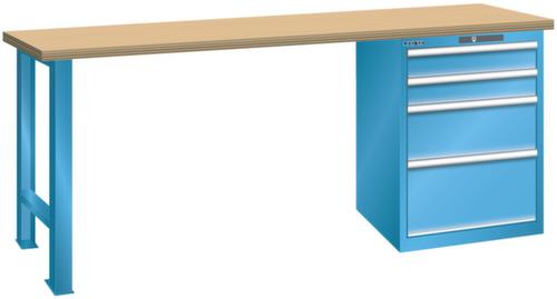 "longDescription": "LISTA Werkbank, Lista Einheit: 27x36E, BxTxH: 2000x800x850mm, Material: Buche, Stärke 50mm, inkl. Vormontage und Befestigungsmaterial, Max. Belastung: 1000kg, Anzahl Schubladen: 4, Anzahl Fronthöhen (Tragkraft): 2x100mm (75kg), 1x200mm (75kg), 1x300mm (75kg), Schubladen-Nutzfläche BxT: 459x612mm, Schliessart: Code Lock, elektronisches Zahlenschloss mit 10 Ziffern für 4- bis 6-stellige Codes, bis 100 Codes, Farbe Gehäuse/Füsse: Lichtblau RAL 5012, Farbe Schubladen: Lichtblau RAL 5012. Hohe Ausführungsvielfalt dank verschiedener Komponenten, Unterbauten, Materialien und Oberflächen. Jederzeit anpassbar an neue Arbeitsumgebungen durch den flexiblen Ein- und Umbau sämtlicher Komponenten im Baukastensystem. Schnelle und einfache Montage dank Werkbankplatten mit Vorbohrungen inkl. Hülsen zur Befestigung sämtlicher Unterbauten und Schubladenschränke. Allgemeine Vorteile der LISTA-Schubladenschränke<br>",