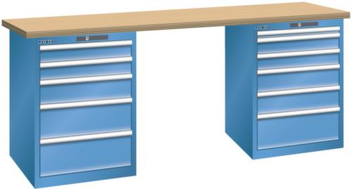 "longDescription": "LISTA Werkbank, Lista Einheit: 27x36E, BxTxH: 2000x800x900mm, Material: Buche, Stärke 50mm, inkl. Vormontage und Befestigungsmaterial, Max. Belastung: 1000kg, Anzahl Schubladen: 5 & 6, Anzahl Fronthöhen (Tragkraft): 2x100mm (75kg), 1x150mm (75kg), 2x200mm (75kg) und 1x50mm (75kg), 2x100mm (75kg), 2x150mm (75kg), 1x200mm (75kg), Schubladen-Nutzfläche BxT: 459x612mm, Schliessart: Code Lock, elektronisches Zahlenschloss mit 10 Ziffern für 4- bis 6-stellige Codes, bis 100 Codes, Farbe Gehäuse/Füsse: Capriblau RAL 5019, Farbe Schubladen: Capriblau RAL 5019. Hohe Ausführungsvielfalt dank verschiedener Komponenten, Unterbauten, Materialien und Oberflächen. Jederzeit anpassbar an neue Arbeitsumgebungen durch den flexiblen Ein- und Umbau sämtlicher Komponenten im Baukastensystem. Schnelle und einfache Montage dank Werkbankplatten mit Vorbohrungen inkl. Hülsen zur Befestigung sämtlicher Unterbauten und Schubladenschränke. Allgemeine Vorteile der LISTA-Schubladenschränke<br>",