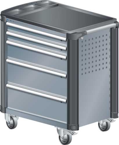 "longDescription": "LISTA Werkstattwagen, Lista Einheit: 36x27E, BxTxH: 894x525x928mm, Schubladen-Nutzfläche BxT: 612x459mm, Anzahl Schubladen: 5, Anzahl Fronthöhen (Tragkraft): 2x75mm (40kg), 1x150mm (40kg), 2x200mm (40kg), Schliessart: Key Lock, Standard-Schliessung mit Wechselyzlinder inkl. 2 Schlüsseln mit Schlüsselnummer, Ausstattung: Mit Kunststoffabdeckung und Kantenschutz inkl. Einzelsicherung rechts, 1 Schiebestange, 2 Bockrollen und 2 Lenkrollen inkl. Feststeller aus Vollgummi mit Ø 100mm, Farbe Gehäuse: Grau metallic NCS S 6502-B, Farbe Schubladen: Grau metallic NCS S 6502-B. Optimale Traglasten: 40 kg pro Schublade, 400 kg Gehäuse-Tragkraft. Maximale Ausnutzung dank Vollauszug und optimaler Mantelhöhe der Schubladen. Perfekte Arbeitssicherheit: Zentralverschluss und Schubladeneinzel- bzw. Doppelsicherung gegen ungewolltes Öffnen im Fahrbetrieb. Flexible Anpassungsmöglichkeiten durch gelochte Seitenwand und Rückwand für die Aufnahme von Zubehör und Werkzeughaken. Höchster Bedienkomfort mit stabiler, ergonomischer Schiebestange. Volle Mobilität dank je zwei leichtgängiger Bock- und Lenkrollen aus Vollgummi. Zusätzliche Ablage- und Arbeitsfläche durch widerstandsfähige Holzabdeckung oder rutschfeste Kunststoffabdeckung mit Kleinteilefächern. Volle Kompatibilität mit LISTA Einteilungsmaterial durch einheitliches Mass<br>",