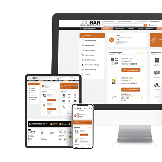 Ein individuell angepasster UDO BÄR Shop nur für Sie. Greifen Sie bequem auf Ihre Sonderkonditionen, auf Ihr individuelles Produktsortiment sowie auf Ihre Unternehmensstruktur zu.