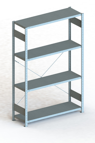Die wichtigsten Maße des META Lagerregals CLIP S3 230 auf einen Blick:4 Ebene(n) mit Stahlboden. Nutzung einseitig - zur Aufstellung an der Wand konzipiert. Ständer mit schlag- und kratzfester Pulverbeschichtung in RAL7035 Lichtgrau, Ebenen mit schlag- und kratzfester Pulverbeschichtung in RAL7035 Lichtgrau.