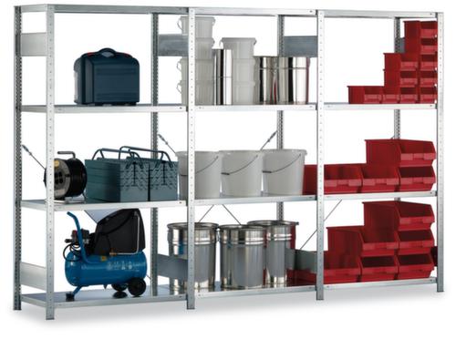 "description": "Grund+2xAnbau, HxBxT 2000x3068x436mm, Fachl. 150kg, je Feld 4xStahlboden, Winkel gerade, einseitig, Ständer verzinkt, Ebenen verzinkt",