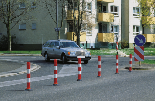 "description": "in verschiedenen Höhen, retroreflektierend, im Notfall überfahrbar",