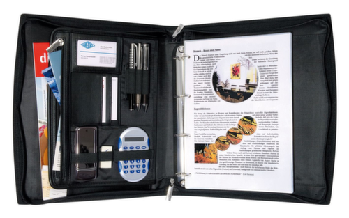 Einsteck-/Kartenfächer, 4-Ring-Mechanik, Reißverschlussfach, Schlaufen