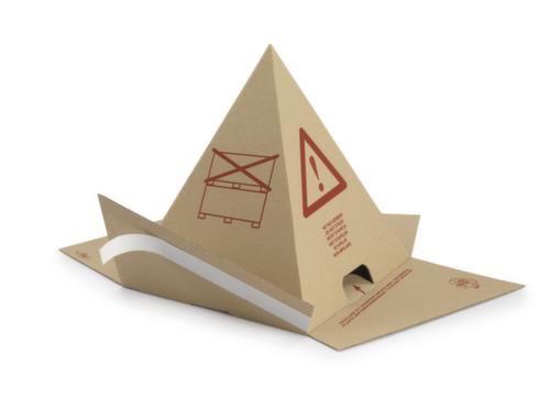 "longDescription": "<h2>Palettenhütchen</h2><ul><li>Verhindert das Stapeln auf der Paletten</li><li>3D-Warnschild für physische und optische Warnung gegen Transportschäden</li><li>\"Nicht stapeln\" ist in 6 Sprachen aufgedruckt</li><li>Einfach mit Umreifungsband oder Klebestreifen zu befestigen</li><li>Aus Wellpappe</li><li>Recycelbar</li></ul><br><h3>Anlieferung:</h3><ul><li>Flach liegende Anlieferung</li></ul>",