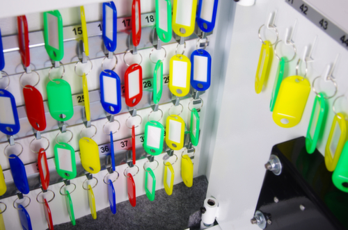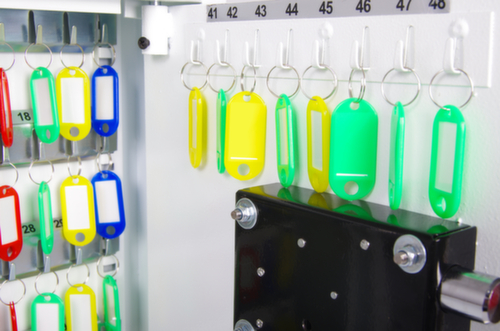 "value": "<h2>Mehr Übersicht dank farblicher Einteilung</h2><p>Mithilfe der <strong>farbigen Schlüsselringe und Anhänger</strong> schaffen Sie Übersicht und einen aufgeräumten Schrankinhalt. Je nach Einsatzgebiet können Sie die Farben verteilen und ordnen. Das hilft allen Nutzern bei der Entnahme und Rückgabe der Schlüssel.</p>"