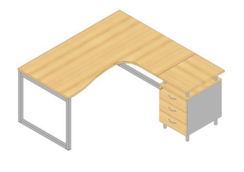 "description": "1 Schreibtisch, 1 Standcontainer, Tisch HxBxT 730x1600x1650mm, Kufengestell weiß, Anbau links, Eiche",