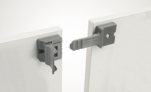 Geeignet für Klapptisch. Verbindungshaken zur Verlinkung mehrerer Tische. So kann die Fläche organisiert und stabil vergrößert werden.