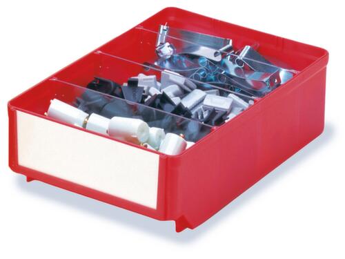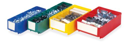 "longDescription": "<h2>Regalkasten</h2><strong>optimale Übersicht durch extra große Beschriftungsfläche</strong><br><ul><li><strong>Robust</strong> - aus schlagzähem Polystyrol</li><li><strong>Sofort Einsatzbereit</strong> - Lieferung inklusive Etiketten</li></ul><br><strong>Direkt mitbestellen:</strong><br><ul><li><strong>Noch mehr Übersicht</strong> - Querteiler zur Unterteilun in einzelne Segmente</li><li><strong>Sicherer, einhändiger Zugriff</strong> - Auszugsperre für das Schrägstellen im Regal</li></ul><br>Dieser Regalkasten ist die optimale Lösung zur Lagerung von Kleinteilen im Regal. Der Lagerkasten besteht aus robustem Polystyrol, hat ein geringes Eigengewicht und ist trotzdem stabil. Die Konstruktion hat eine Garantie von 5 Jahren. <br><br>Die glatten Oberflächen ermöglichen eine schnelle und einfache Reinigung. Der Kasten sorgt für eine einfache Handhabung in Werkstatt und Lager. Die Kästen sind auch platzsparend übereinander stapelbar und somit sind auch mehrere Sichtlagerkästen bei geringem Platz leicht unterzubringen. <br><br>Zur Beschriftung des Kleinteilkastens kann die Frontseite mit extra großen Etiketten versehen werden, welche im Lieferumfang inbegriffen sind. Durch die Beschriftung der Etiketten kann der Einsatz von mehreren Regalkästen zur Ordnung im Regal beitragen und schaffen den perfekten Überblick.<br><strong>Gut zu wissen!</strong><br><br>Passend zu jeder Kastengröße sind transparente Trennwände zur Aufteilung des Inhaltes und Auszug-Sperren, um ein Herausfallen des Kastens aus dem Regal zu verhindern. Also direkt mitbestellen!<br>",