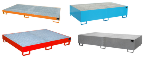 "description": "Auffangvol. 540l, m. Gitterrost, Stahl, RAL3000",