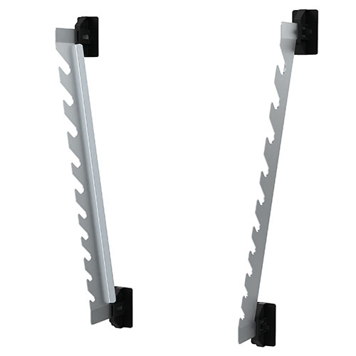 "description": "f. Lochplatte, f. 10 Stück, senkrecht, inkl. Träger, HxBxT 255x225x50mm, silber/schwarz, Metall",