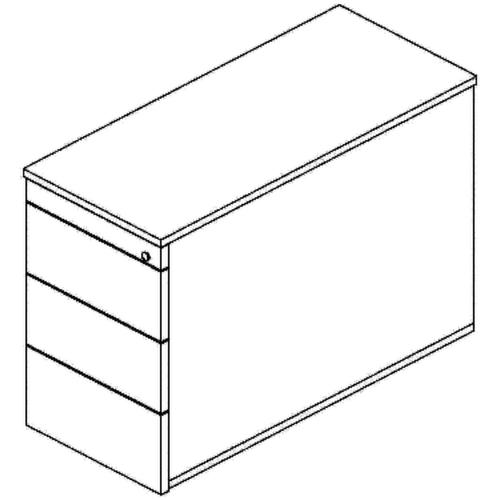 Die wichtigsten Maße des Rollcontainers auf einen Blick:Konstruktion aus Holz. Der Rollcontainer bietet mit 4 Schubladen viel Platz zur Unterbringung von Utensilien, Unterlagen und Akten. Auszüge 85 %. Mit Bogengriff in schwarz. Verschließbar mit Zentralverschluss.
