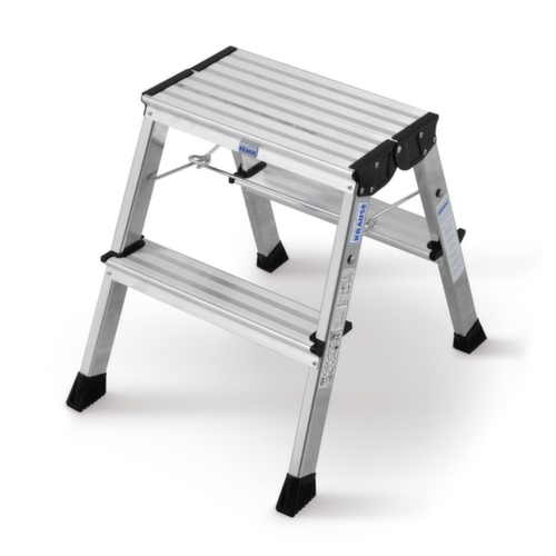 "metaDescription": "Roll-Klapptritt - Alu, alusilber, Podest HxT 0,44x20m, 2x2 Stufen, 4 Federrollen",