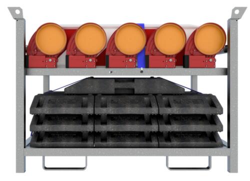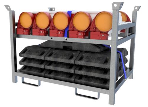 10 Baken, 10 Bakenleuchten, 10 Fußplatten, 2 Zurrgurte, 1 Lager- und Transportpalette