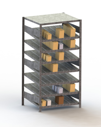 Die wichtigsten Maße des META Schrägbodenregals CLIP S3 auf einen Blick:7 Ebene(n) mit Schrägboden, zusätzlich 1 Abdeckboden. Ebenen mit 6 Fachteilerdrähten. Nutzung einseitig - zur Aufstellung an der Wand konzipiert. Konstruktion aus Stahl. Ständer mit korrosionsschützender Zinkbeschichtung. Ebenen mit korrosionsschützender Zinkbeschichtung.