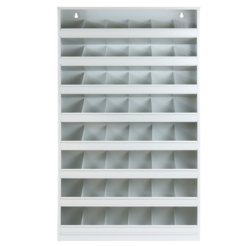 "description": "HxBxT 850x500x125 mm, mit 48 Schütten, aus Metall mit Pulverbeschichtung, in verschiedenen Farben",