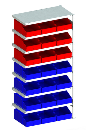 Die wichtigsten Maße des META Behälterregals CLIP S3 100 auf einen Blick:Übersichtliche Kleinteilelagerung auf 7 Ebenen mit Stahlboden und 21 Kästen. Ständer mit korrosionsschützender Zinkbeschichtung. Ebenen mit korrosionsschützender Zinkbeschichtung.