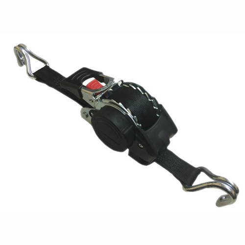 Nutzungshinweis: Den S-Haken des Festendes an geeigneter Stelle ienhängen. Den Gurt ausziehen und um die Ladung legen, einhaken und über den Ratschenhebel spannen. Zum Lösen genügt ein Knopfdruck und der Gurt rollt sich automatisch wieder auf.