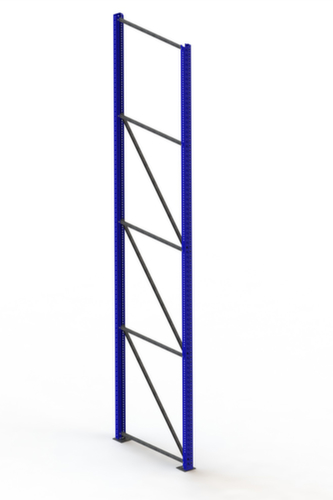 Die wichtigsten Maße des META Selbstbau-Palettenregals Multipal S auf einen Blick:Konstruktion aus Stahl, Stabilität durch kaltverformte Profile mit verschraubter Ausfachung. Ständer mit strapazierfähiger Kunststoffbeschichtung in RAL5010 Enzianblau.