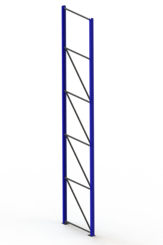 Die wichtigsten Maße des META Selbstbau-Palettenregals Multipal S auf einen Blick:Konstruktion aus Stahl, Stabilität durch kaltverformte Profile mit verschraubter Ausfachung. Ständer mit strapazierfähiger Kunststoffbeschichtung in RAL5010 Enzianblau.