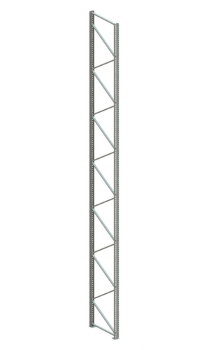 Die wichtigsten Maße des META Selbstbau-Palettenregals Multipal S auf einen Blick:Konstruktion aus Stahl, Stabilität durch kaltverformte Profile mit verschraubter Ausfachung. Ständer mit korrosionsschützender Zinkbeschichtung.