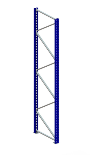 Die wichtigsten Maße des META Selbstbau-Palettenregals Multipal S auf einen Blick:Konstruktion aus Stahl, Stabilität durch kaltverformte Profile mit verschraubter Ausfachung. Ständer mit strapazierfähiger Kunststoffbeschichtung in RAL5010 Enzianblau.