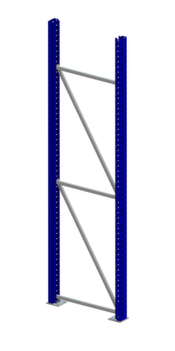 Die wichtigsten Maße des META Selbstbau-Palettenregals Multipal S auf einen Blick:Konstruktion aus Stahl, Stabilität durch kaltverformte Profile mit verschraubter Ausfachung. Ständer mit strapazierfähiger Kunststoffbeschichtung in RAL5010 Enzianblau.