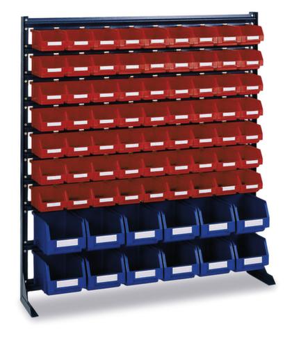 "longDescription": "<h2>Ständerregal mit Sichtlagerkästen</h2><strong>Kleinteile übersichtlich und griffbereit lagern</strong><br><ul><li><strong>Sofort einsatzbereit</strong> - einseitig mit Sichtlagerkästen in verschiedenen Größen und Farben</li><li><strong>Einfaches An- und Abhängen der Kästen</strong> im leeren und gefüllten Zustand</li><li><strong>Bruchfest und langlebig</strong> - Sichtlagerkästen aus Polypropylen</li><li><strong>Schlag- und kratzfeste Oberfläche</strong> - Ständer mit Pulverbeschichtung</li><li><strong>Inklusive Befestigungsmaterial</strong> - Wand- oder Bodenverschraubung erforderlich</li></ul>Das Ständerregal sorgt für einen einfachen und <strong>bequemen Zugriff</strong> auf Lagerware. Arbeitsmaterialien, Waren und Güter können Sie so leicht zugänglich verstauen. Dieses Ständerregal ist durch den Einsatz von Stahl <strong>sehr stabil und robust</strong>. Zur Ausstattung des Regals gehören außerdem die Sichtlagerkästen, die für eine praktische Kleinteilelagerung sorgen. Der Aufbau erfolgt durch ein Schraubsystem, was für eine hohe Standfestigkeit sorgt und vor allem in der Festinstallation angewendet wird.<br><br><br><strong>Nicht das gefunden, was Sie benötigen?</strong><br><br>Wir bieten Ihnen gerne bedarfsgerechte Lösungen an. Für eine individuelle Planung sprechen Sie uns bitte an. Wir beraten Sie gerne persönlich am Telefon oder auch direkt vor Ort durch unseren Außendienst.<br>",