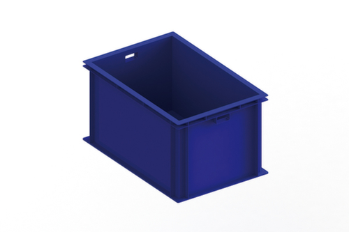 Aus bruchsicherem Polypropylen in blau. Wände geschlossen, Boden geschlossen. Einfacher Transport durch Durchfassgriffe. Mehrfach stapelbar.
