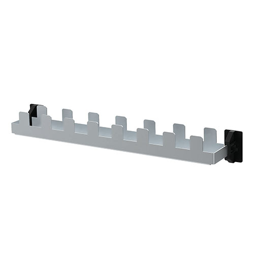 "description": "f. Lochplatte, f. 10 Stück, waagerecht, inkl. Träger, HxBxT 35x304x40mm, silber/schwarz, Metall",