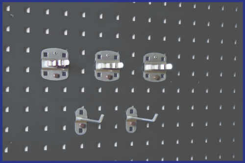 "description": "f. Reinigungsstation, 4 Einzelhaken, 2 Doppelhaken, 2 Stielklemmen, Schlauch-/Kabelhalter, Werkzeughalter, Runddosenhalter, Stahl, silber, 11-teilig",