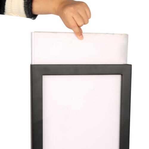 "description": "f. Gurtwarnständer, Schild HxB 500x260mm, DIN A4, Metall, schwarz",