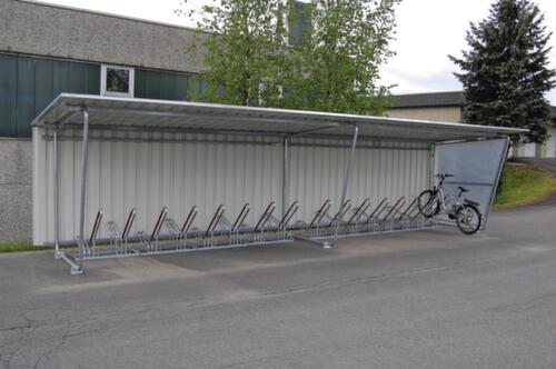 "longDescription": "<h2>Überdachung</h2><strong>Wetterschutz für Fahrräder</strong><br><ul><li><strong>Jederzeit erweiterbar</strong> durch Anbauelemente</li><li><strong>Korrosionsgeschützt</strong> - alle Stahlteile sind verzinkt</li><li><strong>Trockener Parkraum</strong> dank Pultdach aus verzinktem Trapezblech mit Beschichtung</li><li><strong>Leichte Eigenmontage</strong> - inklusive Montageanleitung, Bauzeichnung, Fundamentplan, ohne Befestigungsmaterial</li></ul><br><strong>Direkt mitbestellen:</strong><br><ul><li><strong>Rundum Schutz</strong> - Rückwand aus verzinktem Trapezblech mit Beschichtung und Seitenwand aus glattem, durchscheinenden Polyester, Stützrahmen aus Rundrohr und mit Anschlusswinkeln zum Aufdübeln</li></ul><br><strong>Sie haben die Wahl:</strong><br><ul><li><strong>Zur einseitigen Nutzung</strong> - für bis zu 12 einseitige Fahhrad-Einstellplätze</li><li><strong>Zur beidseitigen Nutzung</strong> - für bis zu 24 beidseitige Fahrrad-Einstellplätze und Dachrinne und Fallrohr aus PVC</li></ul><br><strong>Anlieferung!</strong><br><ul><li>Abladen mit Stapler oder Kran erforderlich</li><li>Fundamentarbeiten bauseits</li></ul>",