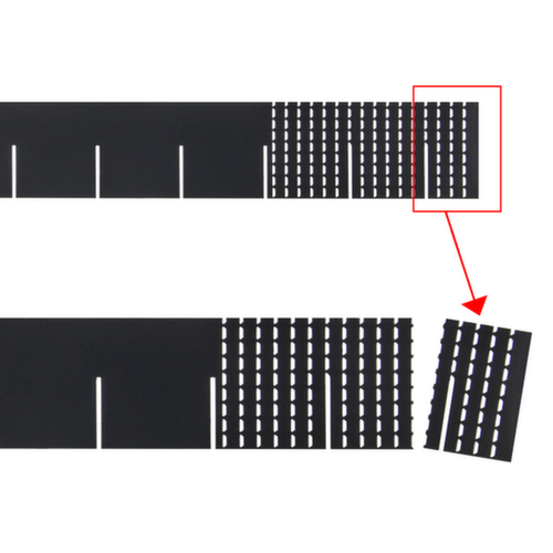 "longDescription": "<h2>Universaleinteiler</h2><strong>Herstellerunabhängig für nahezu jede Schublade passend</strong><br><ul><li><strong>Werkzeuglos individuell anpassbar</strong> durch Perforation</li><li><strong>Robust</strong> - aus Metall mit Pulverbeschichtung</li></ul>",