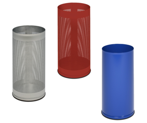 "longDescription": "<h2>Schirmständer</h2><ul><li>Wahlweise mit glattem oder gelochtem Korpus</li><li>Aus Stahlblech, pulverbeschichtet in 6 Farben oder aus Edelstahl</li><li>Im Bodenbereich mit Kantenschutz</li><li>Auch als Papierkorb nutzbar</li></ul>",