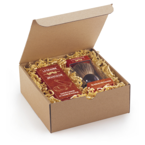 "longDescription": "<h2>Wellpapp-Geschenkbox</h2><h3>Schlichte Eleganz und dreifacher Schutz!</h3><ul><li>Hochwertige Wellpappe Geschenkverpackung</li><li>Stabile Geschenkbox aus Karton: <strong>dreifache Kartonstärke an den Seiten</strong></li><li>Gleiche Farbe von Innen- und Außenseite (außer Farbe grün: Innenseite: braun)</li><li>Schlichtes Design mit glatter Oberfläche</li><li>Flache Anlieferung & einfache Montage der Wellpapp-Geschenkbox</li></ul><p>Praktisch, sicher und elegant, mit dieser Geschenkbox aus Karton können Sie Ihre Produkte garantiert effektvoll aufbewahren und verschenken. Die attraktive Geschenkbox aus Wellpappe überzeugt durch <strong>moderne und schlichte Eleganz</strong>. Sie hat eine glatte Oberfläche und ist als Wellpappe Geschenkverpackung in den Farben braun, schwarz, grün, rosa oder weiß erhältlich. Dies macht die Faltschachtel zum schicken Allrounder für jeden Anlass. Eine dreifache Kartonstärke an den Seiten sorgt für Stabilität und schützt die Produkte im Inneren. Somit können auch Kosmetika, hochwertige Werbegeschenke, Dekorationsgegenstände, Uhren und andere zerbrechliche Produkte gefahrlos in der Geschenkbox aus Pappe verpackt und transportiert werden. Erhältlich in drei Größen, finden Sie bestimmt auch das passende Format für Ihr Geschenk.</p><p>Die Wellpappe Geschenkverpackungen werden <strong>flach angeliefert</strong> und sparen damit Lagerfläche. In nur einem Handgriff lässt sich der braune, weiße, rosa, grüne oder schwarze Geschenkbox Karton schnell und einfach öffnen und verschließen.</p><br><p>Um der Wellpapp-Geschenkbox noch ein gewissen Extra zu verleihen, empfehlen wir Ihnen eine Geschenkschleife. Dann steht der Freude Ihres Gegenüber nichts mehr im Wege!</p><br><p><strong>Alle Details im Überblick:</strong></p><ul><li>Edle Geschenkbox mit glatter Oberfläche</li><li>Brauner, weißer, rosa, grüner oder schwarzer Karton mit dreifacher Kartonstärke an den Seiten</li><li>Material: Mikrowelle, Stärke: 1,6 mm</li><li>Flache Anlieferung und einfache Montage der Geschenkbox aus Pappe</li><li>Verpackungseinheit (VE): 50 Stück (außer 288618 und 288621: 25 Stück)</li></ul><p>In unserem Sortiment finden Sie auch Tragetaschen, raffinierte Schleifen und Packseide für den letzten Feinschliff Ihrer Geschenke. Darüber hinaus bieten wir Ihnen ein großes Sortiment an weiteren Produkten aus Wellpappe.</p><br>",